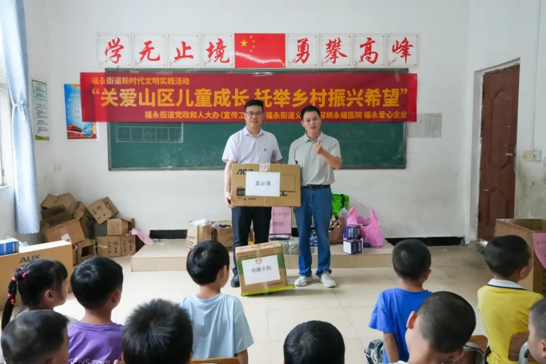 在此次“关爱山区儿童成长 托举乡村振兴希望”的福永新时代文明实践活动中,深圳永福医院慷慨捐赠了包括医疗物资、学习用品(如电脑、校服、球鞋、书包等)在内的丰富物资,以实际行动诠释了企业的社会责任与担当。
